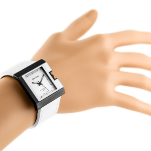 VLASTNOSTI: Mechanismus: MIYOTA CITIZEN – Vyrobeno v Japonsku Antialergický IPG povlak se zvýšenou odolností Voděodolnost WR 30 Kvalitní sklíčko z křemene ROZMĚRY: Obálka: 33 x 35 x 8 mm Číselník: 21 x 24 mm Šířka pásku: 24 mm Maximální obvod: cca 19cm BARVY: Číselník: bílý Index: černý Pásek: bílý Obálka: černá